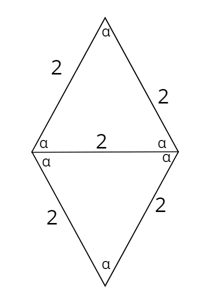 Wiedząc, iż krótsza przekątna rombu ma długość 2 cm, a jeden z jego kątów wewnętrznych jest dwukrotnie większy od drugiego, oblicz pole tego rombu: