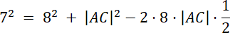 Skorzystaj z twierdzenia cosinusów. Rozwiąż powstałe równanie kwadratowe i wyznacz dwa rozwiązania.