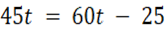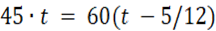 W tym zadaniu należy obliczyć jaką drogę pokonał każdy z pojazdów z A do B, jeśli wiadomo, że pociąg z A do B jechał ze średnią prędkością 45 km/h, a samochód jechał drogą biegnącą wzdłuż torów ze średnią prędkością 60 km/h. Pociąg i samochód wyjechały o tej samej porze, ale samochód dojechał 25 minut wcześniej