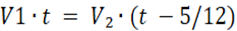 Należy oznaczyć jako V1 prędkość pociągu jako V2 prędkość samochodu, t czas pociągu, t-5/12t jako czas samochodu, drogę oznaczymy jako s, korzystamy ze wzoru droga = prędkość * czas. Po obliczeniu równania,