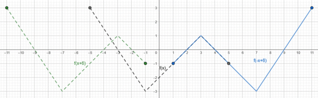 przesunąć o 6 jednostek w lewo, a następnie odbić symetrycznie względem osi OY.