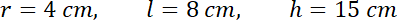 Skorzystaj z tego, że pole całkowite bryły jest sumą pól bocznych walca i dwóch stożków. Podstaw znane wartości i z powstałego równania wyznacz wartość