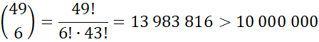 Ustal, czy liczba możliwych wyborów jest większa od 10 000 000, jeśli w jednej z gier liczbowych należy skreślić 6 spośród 49 liczb.