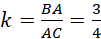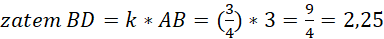 Z podobieństwa trójkątów ABC i BDA: AC odpowiada BA, więc skala .