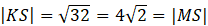 Zauważ, że trójkąty KNS i MNS są prostokątne, o przyprostokątnych równych 4. Są więc podobne z cechy bok, kąt, bok (4, 90o, 4). W takim razie ich przeciwprostokątne są równe.