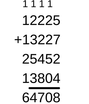 Do liczby pszczół z ula pierwszego dodaj 1002. Żeby dostać liczbę pszczół w ulu trzecim, dodaj pszczoły z pierwszego i drugiego ula. W ulu czwartym oblicz liczbę pszczół dodając do liczby pszczół z ula drugiego 577. Żeby dostać liczbę pszczół w ulu piątym, dodaj do siebie liczby pszczół z poprzednich uli. Skoro w piątym ulu jest tyle, co w czterech poprzednich to wystarczy liczbę pszczół z piątego ula dodać do siebie dwa razy, by dostać liczbę pszczół w pasiece. Wykonując dodawanie pisemne, najpierw należy w słupku dodać do siebie cyfry jedności. Jeśli otrzymana liczba jest dwucyfrowa, należy cyfrę jedności takiego wyniku zapisać pod słupkiem cyfr jedności, a cyfrę dziesiątek z wyniku trzeba przenieść dalej poprzez dopisanie tej cyfry nad kolejnym w lewo słupkiem, czyli słupkiem cyfr dziesiątek. Przy dodawaniu kolejnego słupka, do wyniku należy dodać przeniesioną cyfrę ze słupka wcześniej. W taki sam sposób należy dodawać każdy kolejny słupek, zaczynając od lewej i idąc do prawej. Jeśli w ostatnim słupku wyjdzie liczba większa od 10, to już nie wolno przenosić dalej, bo nie ma kolejnego słupka, lecz należy napisać całą liczbę.