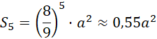 Dywan Sierpińskiego jest figurą, która powstaje z kwadratu w następujący sposób: najpierw należy podzielić kwadrat na dziewięć mniejszych kwadratów i usunąć środkowy z nich. Kolejno postępujemy podobnie, czyli dzielimy każdy z pozostałych kwadratów na dziewięć kwadratów i usuwamy środkowy itd. Wiedząc, że bok pierwszego kwadratu ma długość a, podaj, ile wynosi pole pozostałej części figury po 5 takich dzieleniach.