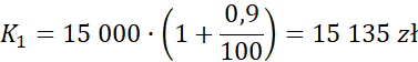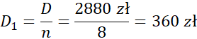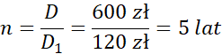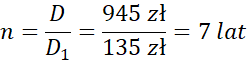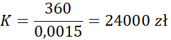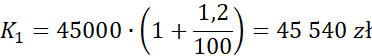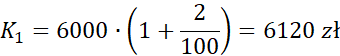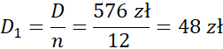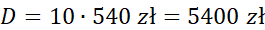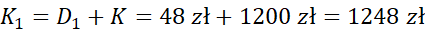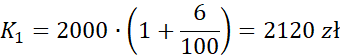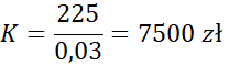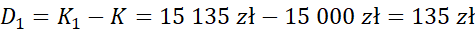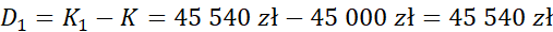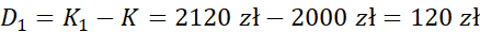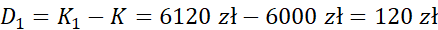 Kwota odsetek D to różnica między łączną kwotą K0 po n latach lokaty i łączną kwotą K, jaką wpłaciliśmy na początku.