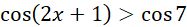 W tym zadaniu musisz rozwiązać nierówność cos (2x + 1) > cos 7.