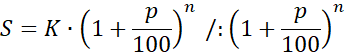 Na konto oprocentowane p% w skali roku wpłacono pewną kwotę. Co roku naliczane są odsetki dodawane do kwoty na lokacie. W tym zadaniu musisz policzyć, jaką kwotę wpłacono, jeśli po upływie n lat znalazło się na nim S zł.