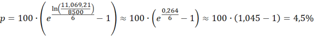 K = 8500, S = 11 069,21, n = 6