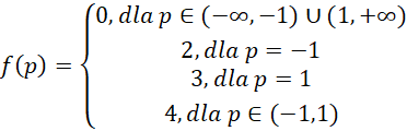 W tym zadaniu musisz narysować wykres funkcji y = f(p), jeśli f(p) oznacza liczbę rozwiązań równania, które należą do przedziału <0; 2π>, a cos 2x = p.