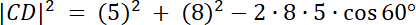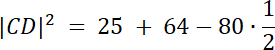 |CD|2 = |AD|2 + |AC|2–2∙|AD|∙|AC|∙cos|∡A|