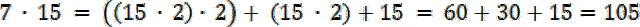 Na podstawie przykładu wykonaj mnożenia przez 15.