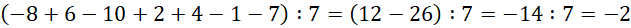 Średnia liczb to ich suma podzielona przez ich liczbę. W przypadku 7 liczb należy je zsumować, a następnie podzielić przez 7.