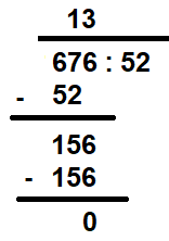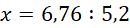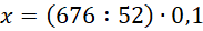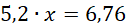 Aby obliczyć x, podziel 6,76 przez 5,2, ponieważ dzielenie jest działaniem odwrotnym do mnożenia. Zamień iloraz na iloraz liczb całkowitych pomnożony przez odpowiednią wielokrotność 0,1. Wykonaj dzielenie pisemne.