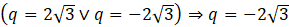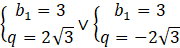 Rozwiąż układ równań z trzema równaniami, które zostały ułożone z danych w treści zadania. Zapisz rozwiązania i sprawdź, czy się zgadzają z dziedziną. Jedno z rozwiązań odrzuć, ponieważ iloraz musi być ujemny. Oblicz wyrazy