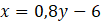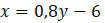Liczba o 20% mniejsza od y jest o 6 większa od x, można zapisać: 0,8y=x+6