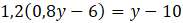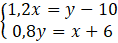 Liczba o 20% większa od x jest o 10 mniejsza od y to 1,2x =y–10