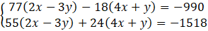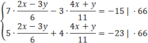 Rozwiąż układ równań stosując metodę wyznacznikową.