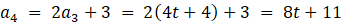 Najpierw wypisz 4 pierwsze wyrazy ciągu, a następnie przyrównaj ostatni do wartości podanej w poleceniu i oblicz t.