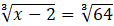 W tym zadaniu musisz znaleźć liczbę x, dla której pierwiastek sześcienny z x – 2 wynosi 4.