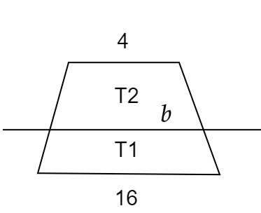 Górna podstawa dolnego trapezu jest dolną podstawą górnego trapezu. Oznacz ją jako