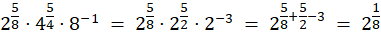 Zamień każdy z czynników tak, by miał w podstawie potęgi liczbę 2. Następnie skorzystaj z praw działań na potęgach i zsumuj wykładniki potęg.
