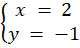 W miejsce x i y podstaw podane w treści zadania wartości, a następnie rozwiąż otrzymany układ równań.