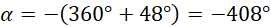 Zauważ, że podany kąt skierowany jest przeciwnie zwrócony do kierunku ruchu wskazówek, więc jest on ujemny. Ponadto jest on równy sumie kąta pełnego oraz podanego kąta ostrego.