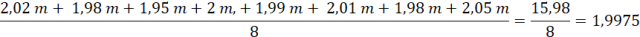 1,95 m, 1,98 m, 1,98 m, 1,99 m, 2 m, 2,01 m, 2,02 m, 2,05 m.