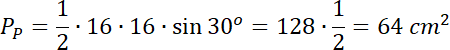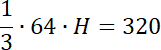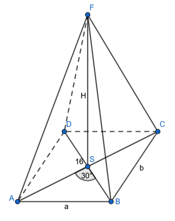 Wyznacz wysokość ostrosłupa prostego, którego podstawą jest prostokąt, którego przekątne mają długość 16 cm i przecinają się pod kątem 30°, a objętość ostrosłupa wynosi 320 cm3.