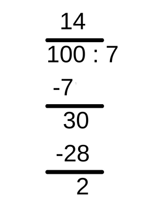 Należy liczbę wszystkich róż podzielić przez liczbę róż w jednym z bukietów, by otrzymać w wyniku dzielenia pisemnego maksymalną liczbę bukietów, jakie może ze stu róż przygotować kwiaciarka. Wykonując dzielenie pisemne, należy najpierw podzielić pierwszą cyfrę od lewej dzielnej przez dzielnik. Jeśli jednak dzielnik nie zmieściłby się w pierwszej cyfrze dzielnej od lewej, to należy wziąć pierwsze dwie cyfry dzielnej i wtedy podzielić je przez zielnik. Wynik z takiego dzielenia należy zapisać nad ostatnią cyfrą dzielnej, która była brana pod uwagę przy obliczeniach. Następnie zapisaną na górze w wyniku cyfrę należy pomnożyć przez dzielnik i zapisać pod liczbami, które dzielono wcześniej i wykonać odejmowanie. Wynik z odejmowania należy zapisać pod tymi liczbami i dopisać do niego kolejną cyfrę z dzielnej, jaka jest w kolejności i powtórzyć te same kroki co wcześniej podczas dzielenia. Dzielenie wykonuje się tak długo, aż nad cyfrą jedności dzielnej będzie w wyniku jakaś cyfra.