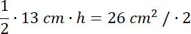 , gdzie a to podstawa, a h to wysokość opuszczona na tę podstawę. Podstaw dane do tego wzoru i przyrównaj do podanego pola, a następnie przekształć równanie tak, aby otrzymać