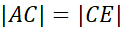 Trójkąty ABC i CDE są przystające z cechy przystawania bok-kąt-bok.
