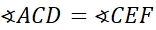 Trójkąty ACD i CEF są przystające z cechy przystawania bok-kąt-bok.