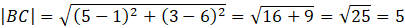 Określ, czy trójkąt o wierzchołkach A(1, 1), B(1, 6) i C(5, 3) ma osie symetrii – jeśli tak, to podaj ich równania.