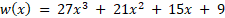 Wiedząc, że suma współczynników wielomianu stopnia trzeciego jest liczbą dwucyfrową większą od 70 oraz że są one kolejnymi liczbami nieparzystymi, które przy dzieleniu przez 3 dają resztę 0, wyznacz wzór wielomianu.