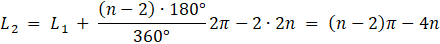 Dany jest wielokąt o n kątach. Z każdego wierzchołka wycięto łuk, którego promień wynosi 2. Udowodnij, że obwód powstałej figury nie może być równy obwodowi wielokąta.