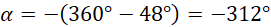 Zauważ, że podany kąt skierowany jest przeciwnie zwrócony do kierunku ruchu wskazówek, więc jest on ujemny. Ponadto jest on równy różnicy kąta pełnego oraz podanemu kątowi ostremu.