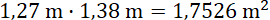 Szerokość powierzchni: 1,27 m + 0,77 m = 2,04 m