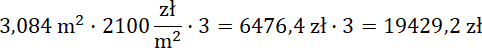 Odszukaj za rysunku potrzebną powierzchnię i wypisz jej wymiary: długość odczytasz z rysunku na dole, a szerokość to suma szerokości okna i odległości dzielącej okno od kół. Oblicz pole tego prostokąta, a następnie odejmij od niego pola dwóch dużych okien. Na koniec pomnóż otrzymany wynik przez cenę 1 metra kwadratowego powierzchni i liczbę miesięcy.