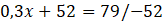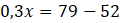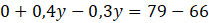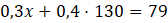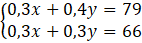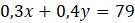 30% liczby x to 0,3x, 40% liczby y to 0,4y suma liczb wynosi: 0,3x + 0,4y = 79