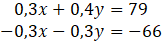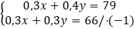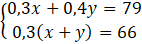 a 30%sumy liczb x i y wynosi 66, czyli 0,3(x + y) = 66.
