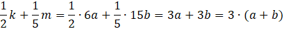 Na początku tego zadania musisz zapisać k i m jako dowolną wielokrotność odpowiednio 6 i 15. Następnie musisz podstawić te zapisy do sumy
