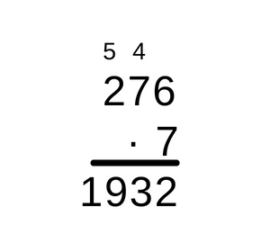 Żeby dostać cenę za tydzień pobytu, pomnóż cenę za dobę przez 7, ponieważ w jednym tygodniu jest 7 dni. Wykonując mnożenie pisemne przez liczbę jednocyfrową, należy najpierw pomnożyć liczbę jednocyfrową, przez cyfrę jedności większej liczby. Jeśli otrzymana liczba jest dwucyfrowa, należy cyfrę jedności takiego wyniku zapisać pod słupkiem cyfr jedności, a cyfrę dziesiątek z wyniku trzeba przenieść dalej poprzez dopisanie tej cyfry nad kolejnym w lewo słupkiem, czyli słupkiem cyfr dziesiątek. Przy mnożeniu kolejnego słupka, do wyniku dodaje się przeniesioną cyfrę ze słupka wcześniej. W taki sam sposób należy mnożyć każdą kolejną cyfrę większej z liczb zaczynając od lewej i idąc do prawej. Jeśli w ostatnim słupku wyjdzie liczba większa od 10, to już nie wolno przenosić dalej, bo nie ma kolejnego słupka, lecz należy napisać całą liczbę.