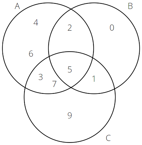 W tym zadaniu musisz wyznaczyć wszystkie elementy trzech zbiorów i umieścić je odpowiednio na diagramie. Następnie musisz zapisać elementy podanego zbioru.