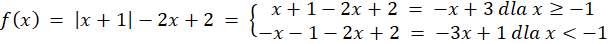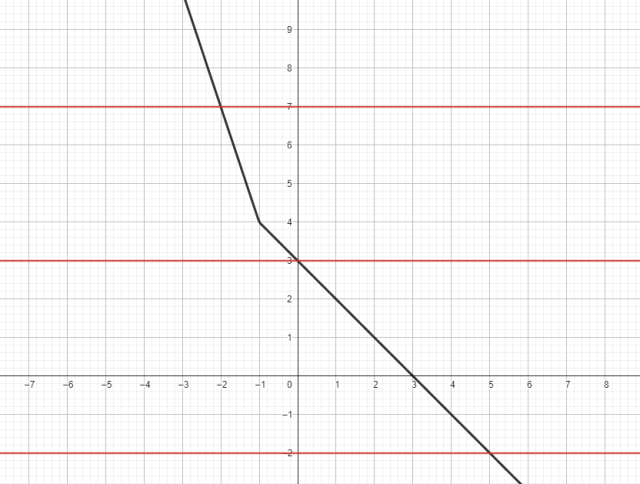Potraktuj lewą stronę jako wzór funkcji. Rozpatrz dwa przypadki wartości bezwzględnej i stwórz szkic wykresu funkcji. Zbadaj ilość punktów przecięcia z otrzymanym wykresem prostej