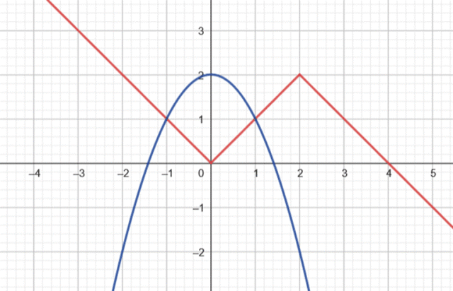 Do podanego wykresu funkcji dorysuj wykres funkcji , a następnie odczytaj z niego punktu wspólne tych funkcji i argumenty, dla których wykres funkcji jest pod lub na wykresie funkcji .