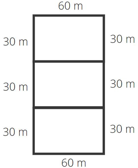 Policz długość muru otaczającego 3 prostokątne działki. Każda działka przylega do następnej co najmniej jednym bokiem tak, że wszystkie działki tworzą prostokąt.